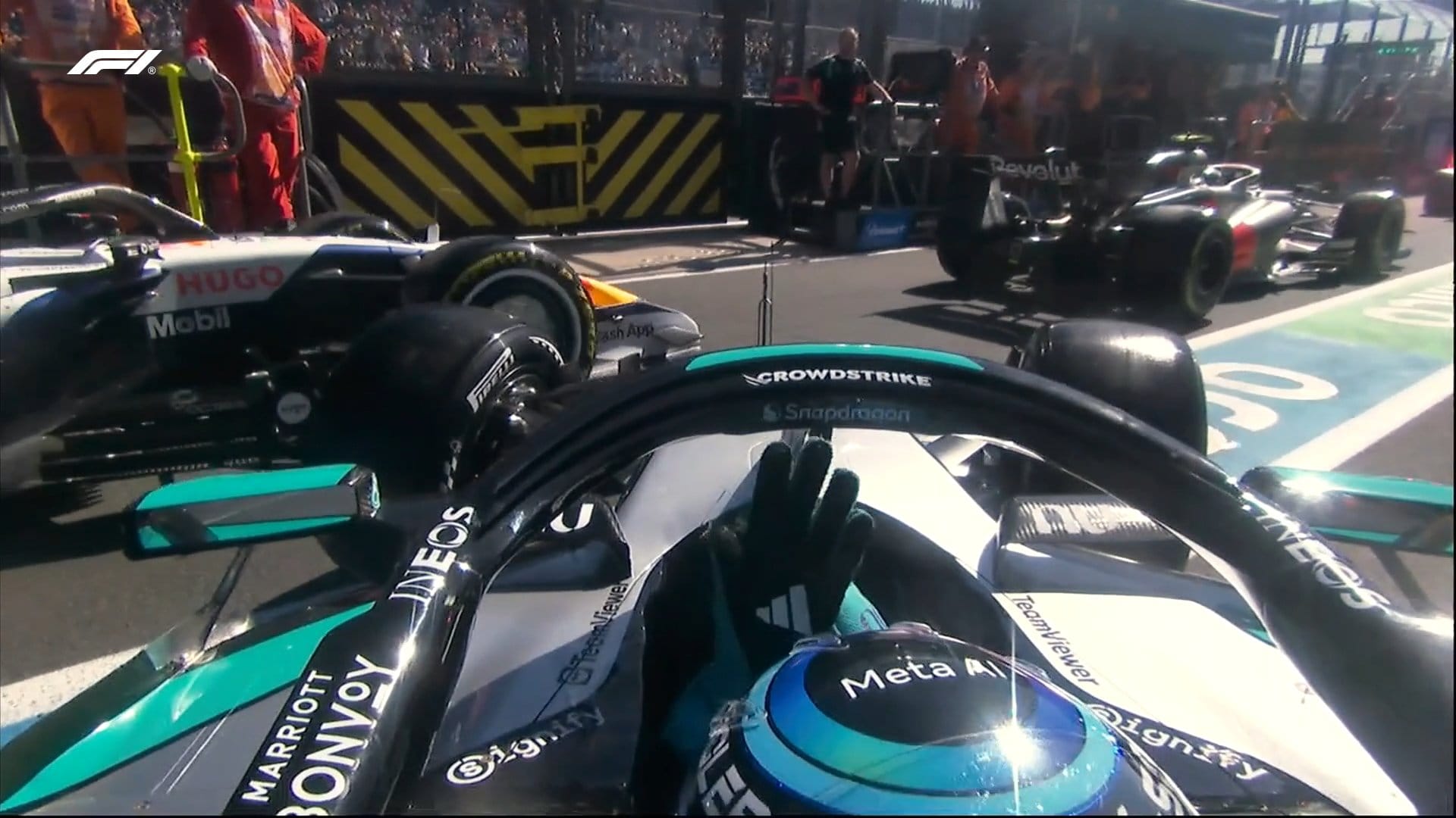 - Russel salía de su garage pero Lindblad no lo dejó meterse en la fila de salida de la calle de Boxes