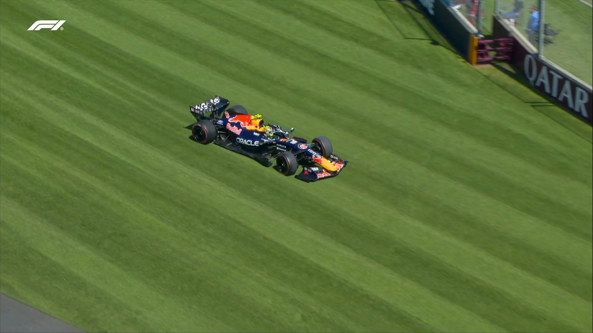 - Checo Perez para su auto a un costado de la pista por problemas con un sensor